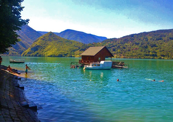 Another artificial lake in the base of Tara near Bajina Basta city. Water sports and touristic boats, coffee break and Serbian grocery.